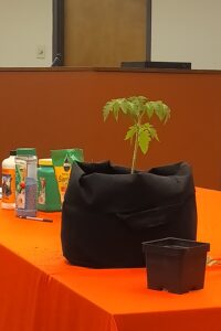 Guests received a number of free items including four tomatoes, growing bags, soil, a knee pad, a measuring cup, a portion plate, a tomato keeper, and more along with valuable information gained from the class by Carmen Ketron and Justin Foxworth. At the end, everyone got to try a tomato dish prepared by Foxworth.