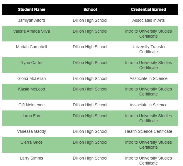 Top Dillon High Graduates Earn College Credentials Through NETC Dual Enrollment Program