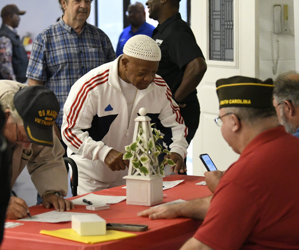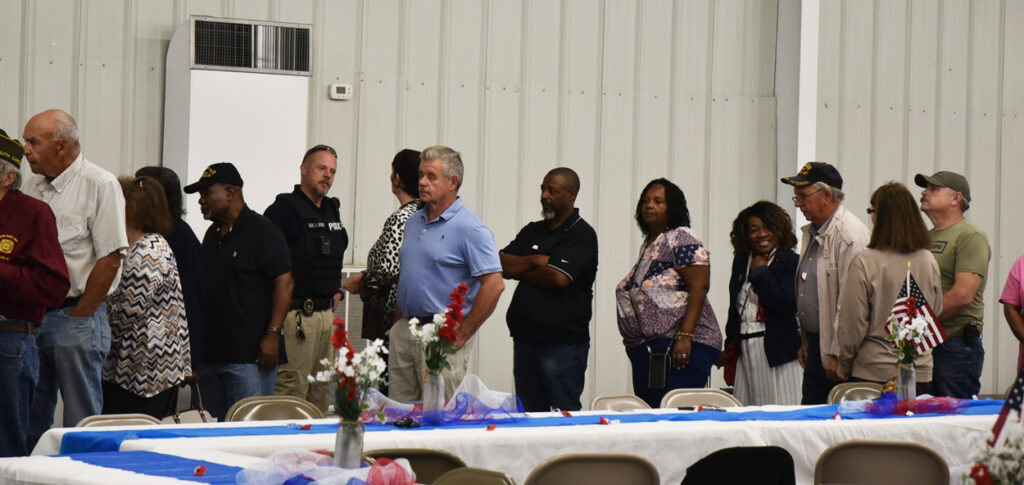On Saturday morning 11/9/2024, the Town of Lake View and the Dillon VFW teamed up for a breakfast for Veterans with speakers on Veterans Administration services and benefits available to Veterans ana their families. The 8:30AM breakfast/program was hosted by Lake View Mayor Sterling “Bull” Lee and VFW members Anthony Burden, Tommy Hayes, and Joey Williams who all welcomed the 85 +/- Veterans and thanked them for their military service. As part of the program opening, the Veterans stood and saluted while Lake View First Lady Nikki McKoy Lee sang the National Anthem. Following Breakfast, Mayor Sterling Lee made remarks to the Veterans. Danielle Smith of the VFW made a presentation about the SC VA Palmetto Pathfinder program that helps Veterans transition and thrive (www.scdva.sc.gov/palmetto-pathfinder-program). VFW VA Service Officer of VFW Department of SC in Columbia, John JJ Johnson (803.647.2442), spoke about available VA services and programs. VFW member Brenda Arnette spoke about the value of Veterans and how their military experiences contribute to the strength of our communities. The mayor closed the program by again thanking the Veterans for their service.