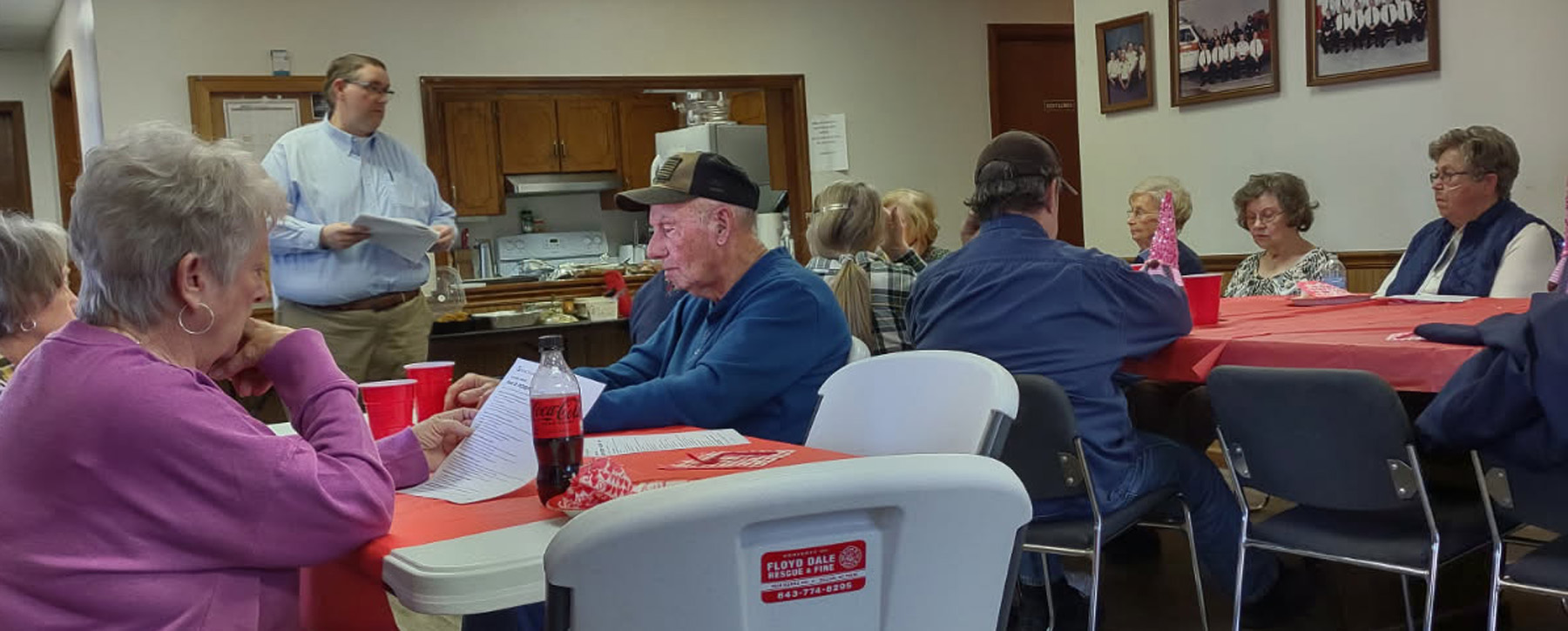 Travis Jackson of First Citizens Bank was the guest speaker at the Floyd Dale Senior In-Crowd meeting recently. He spoke about fraud. (Contributed Photo)