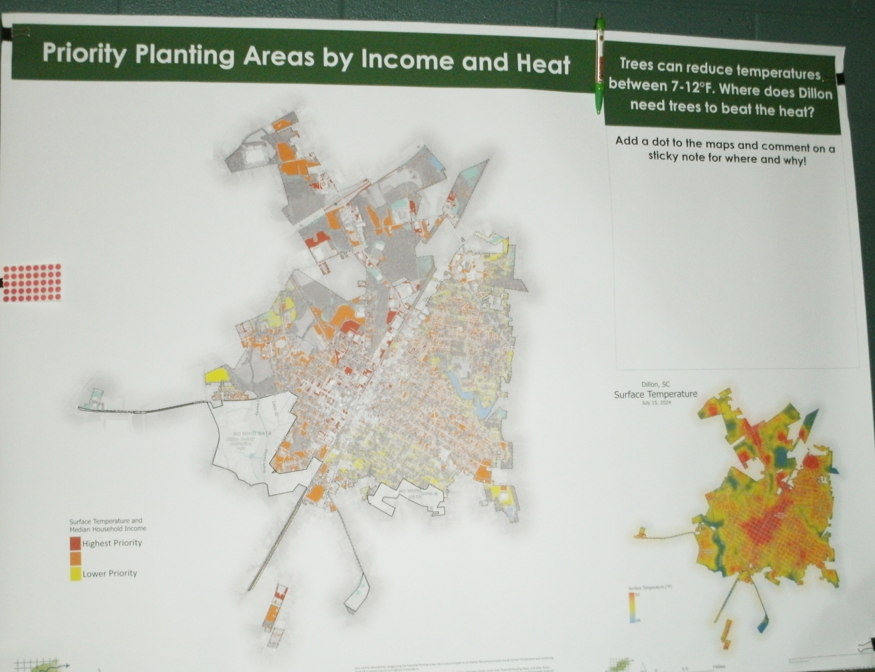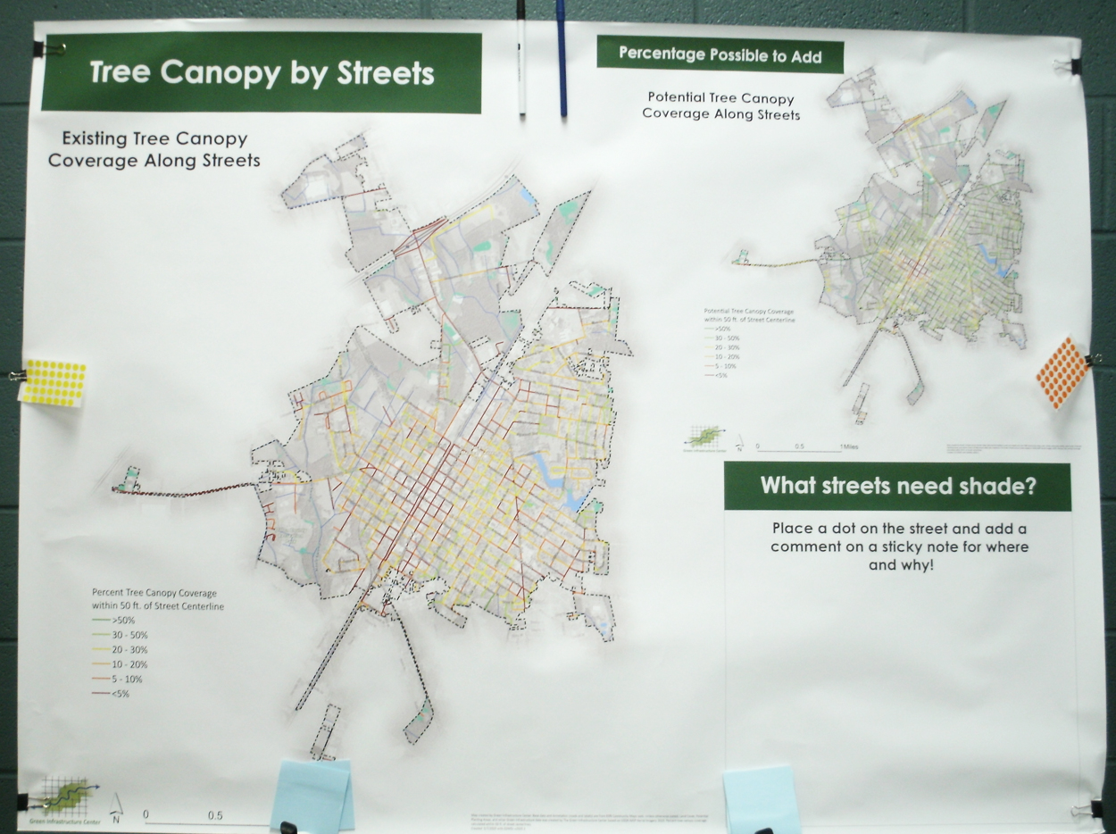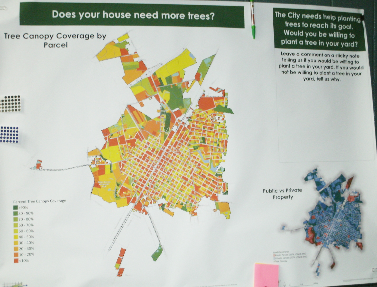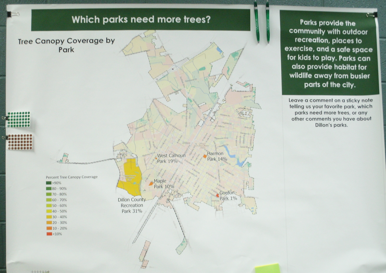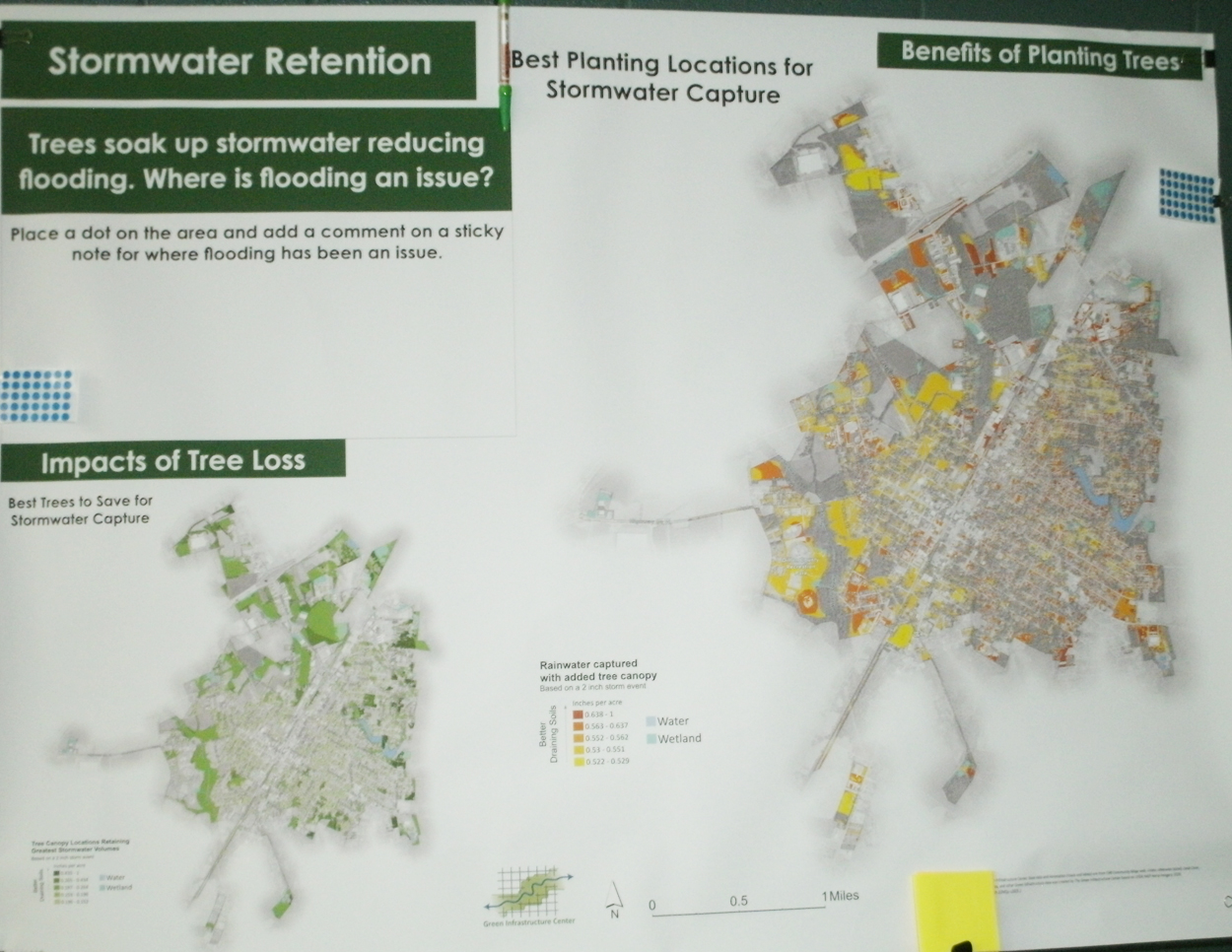 Dillon has been working with Green Infrastructure for several months now gathering data on the community’s tree canopy, creating maps, and reviewing ordinances. Dillon now has a plan for the community’s urban forest. They held this meeting to see what the public’s thoughts are on the plan.
