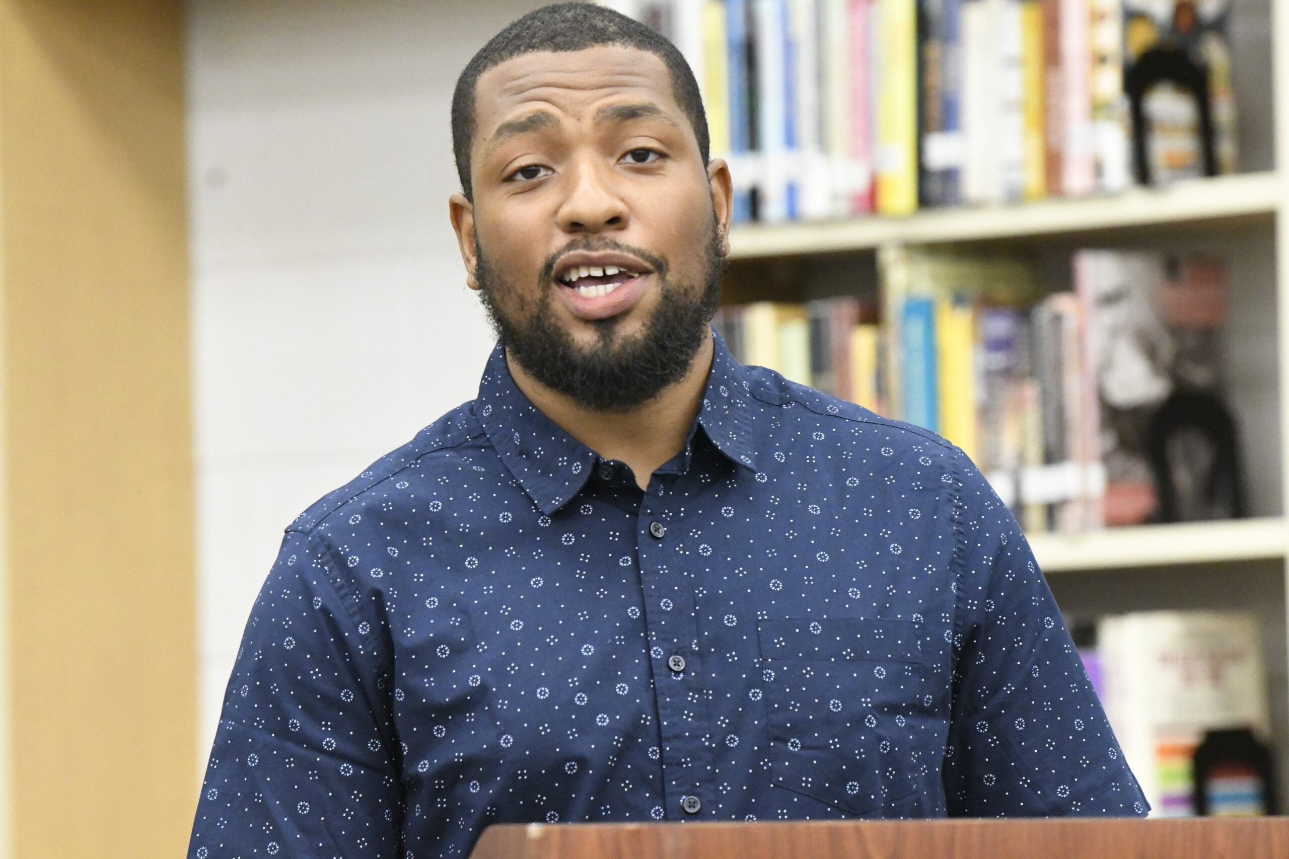 Marlboro County High School Athletic Director Cory Johnson thanked everyone for coming. The thanked the two who signed for all of their accomplishments including their GPA at the school. Johnson remarked that these athletes did what needed to be done each day. He stressed that scouts were looking for 4 things: 1. speed and measurability, 2. academic grades with a core GPA, 3. tape to show one’s athletic skills, and 4. be a “good human”. He thanked the athletes for their accomplishments, families, and school. Johnson is super proud of these athletes.