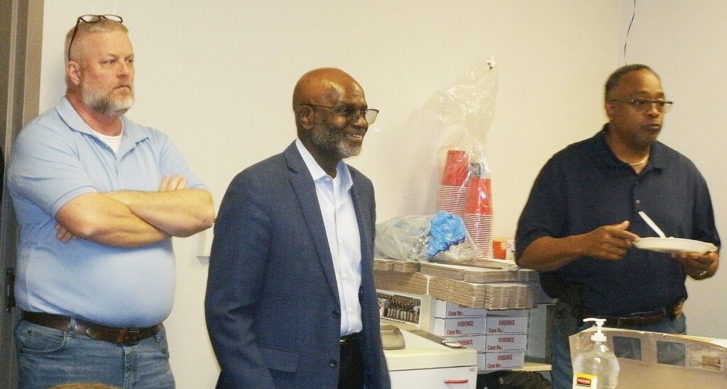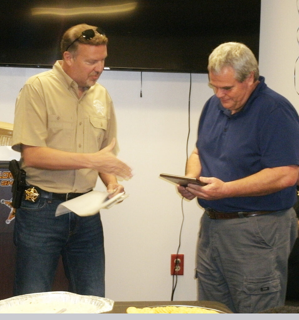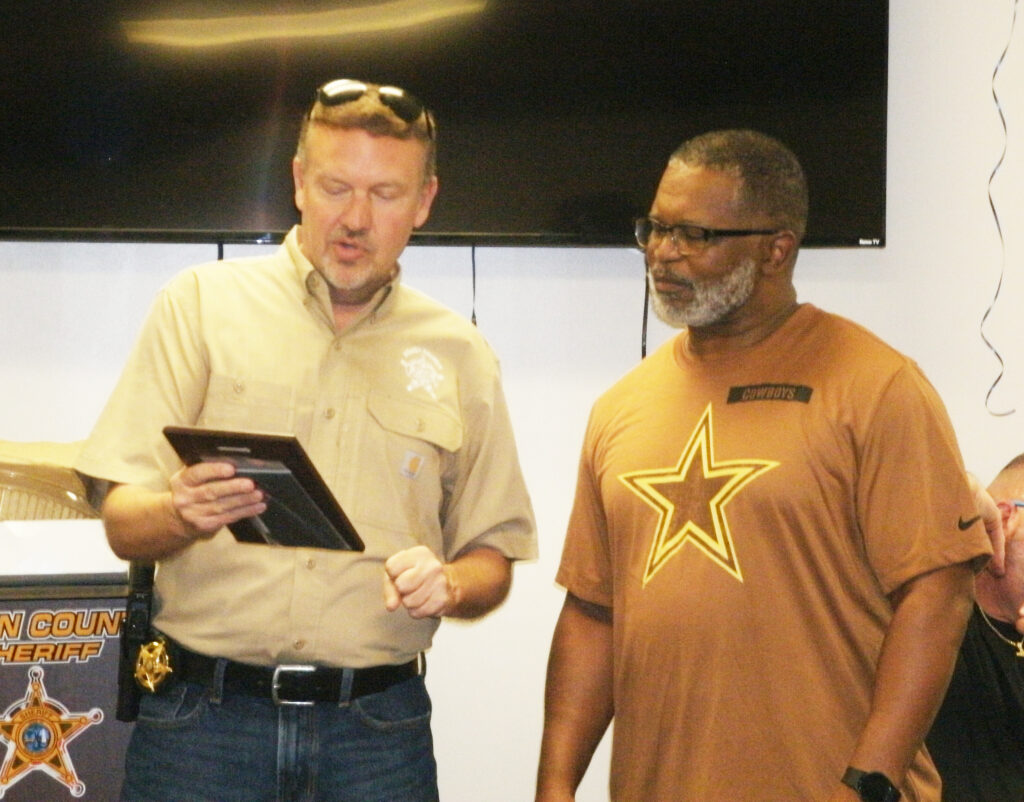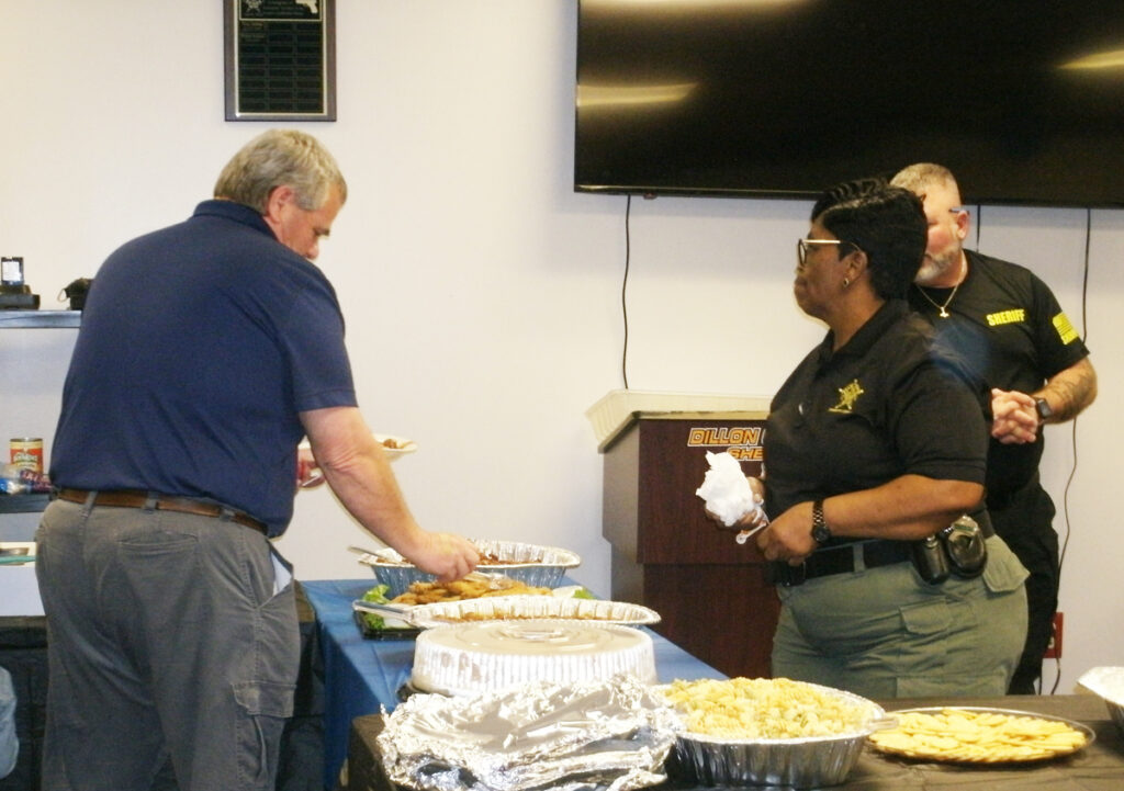 Wayne Kirby joined the Dillon County Sheriff’s Office in 2020. In 1997, he had served at the prison farm, and in 1998, he joined the City of Dillon Police Department. Sheriff Hamilton said that Kirby had worn many hats at the Sheriff’s Office. He started out in patrol before finding his niche in evidence, but he acted in other capacities as office manager and in IT. Hamilton thanked him for 25 years of service and presented him a plaque. Kirby said words could not describe how much this has meant to him over the years and said it was an honor to call everyone at the department his brothers and sisters. Kirby will be going to the high school to teach math.