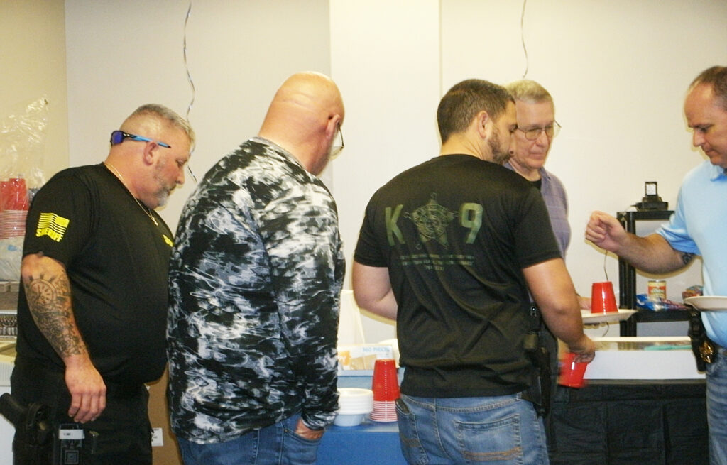 Everyone was all smiles as they enjoyed the large spread of food and reminiscing about what these two deputies have meant to the department.