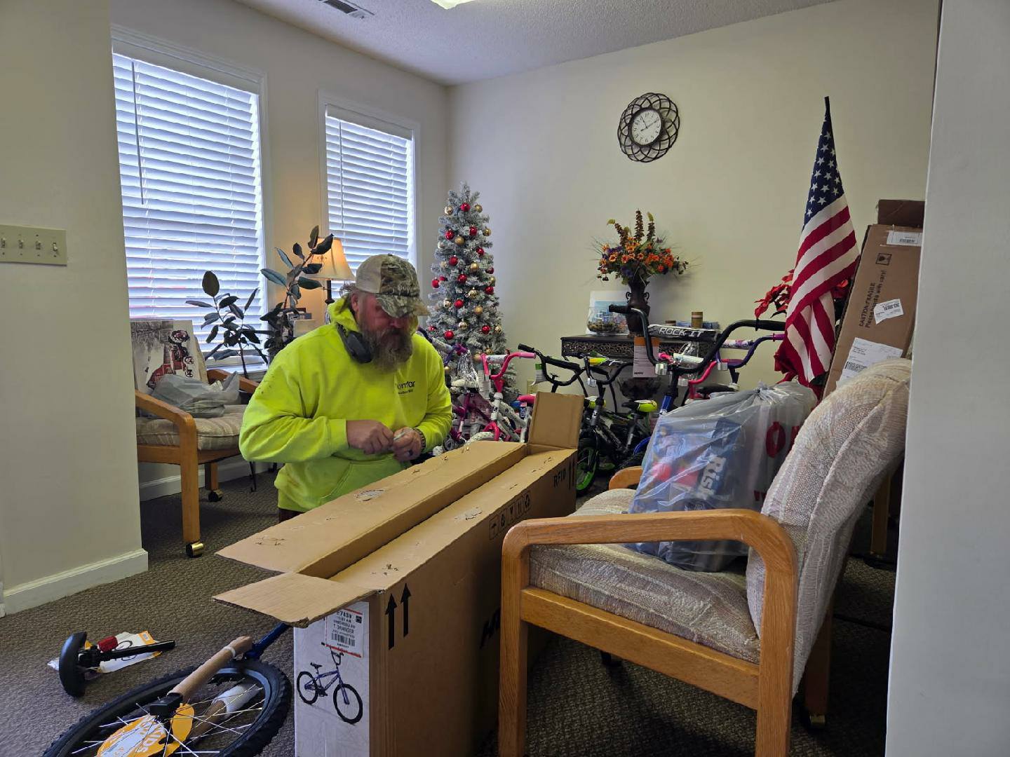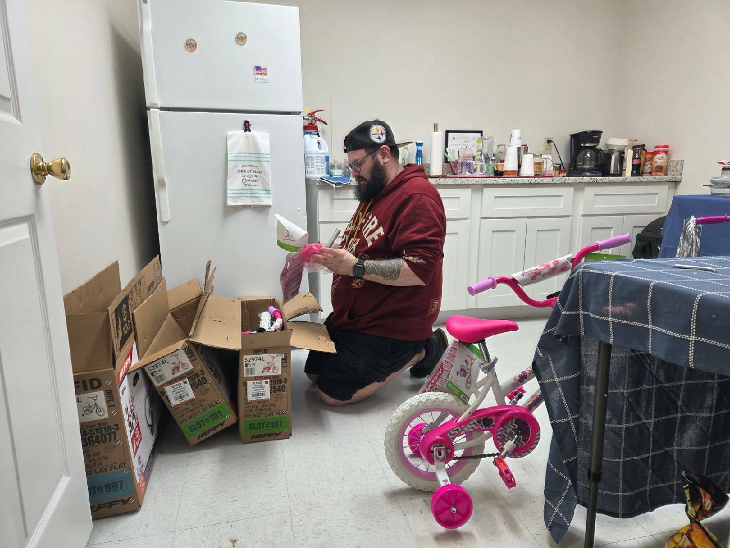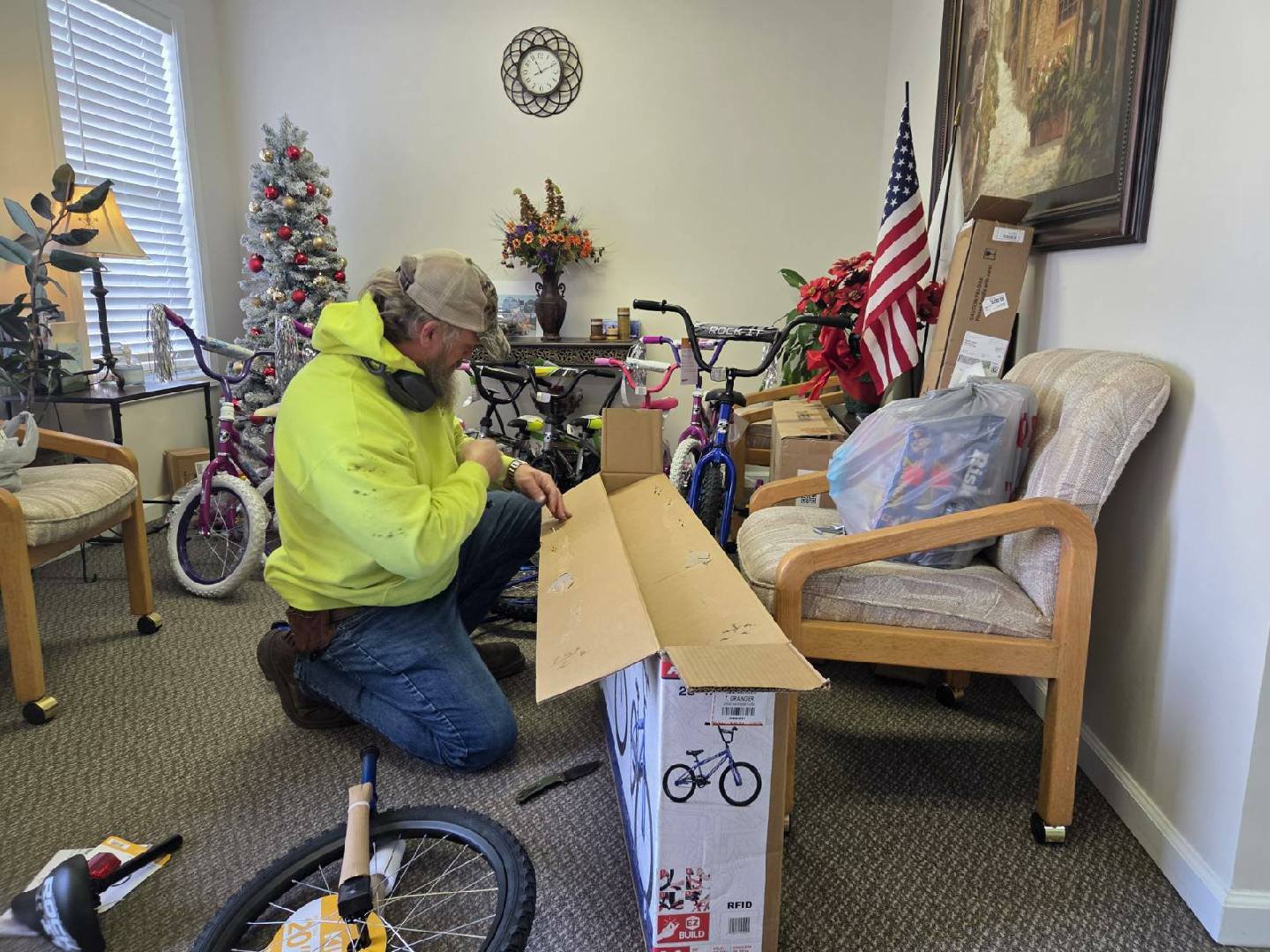 • Volunteers Put Together Bicycles For Toy Drive