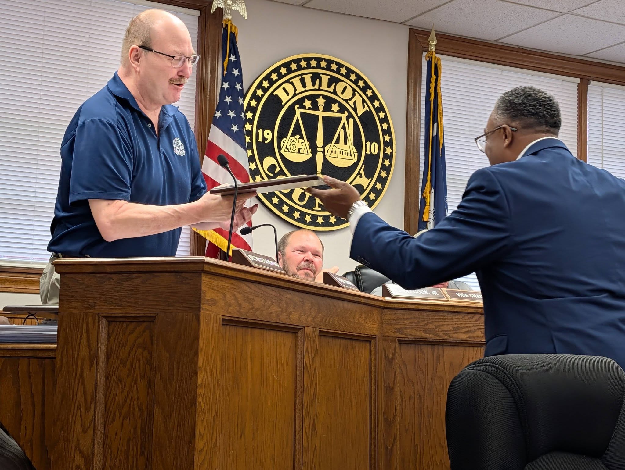 Wayne Green Presents Plaques To Dillon County Council