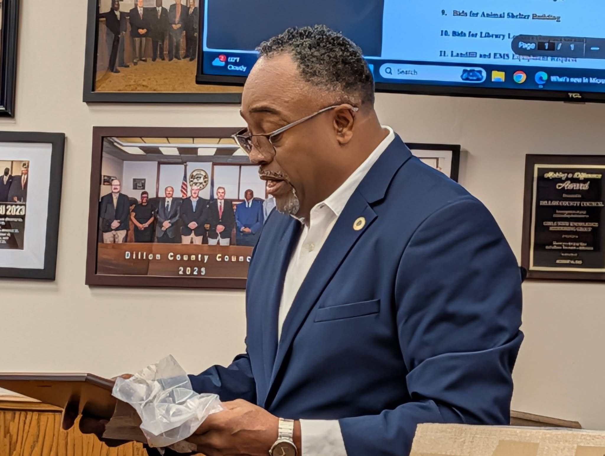Dillon County Council Presents Plaque To Kevin McLellan