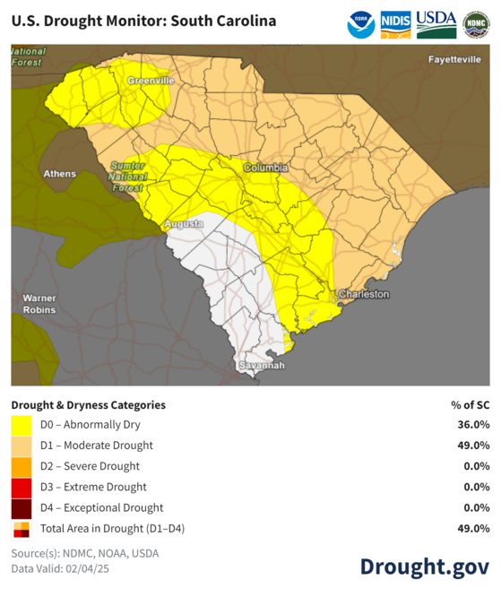 The next update coming out Tuesday will likely show a further worsening of the drought, but substantial rain coming Tuesday and beyond will bring some improvements. The Upstate is likely to see the heaviest rain next week, but we should also be able to put a dent in the drought in other areas.