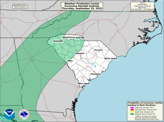 Keep this in mind if you’re traveling across the Upstate and vicinity through tonight or anywhere in the state Friday. If you live in a flood-prone area, you might need to move to higher ground and motorists may have to avoid a flooded road (turn around, don’t drown)
