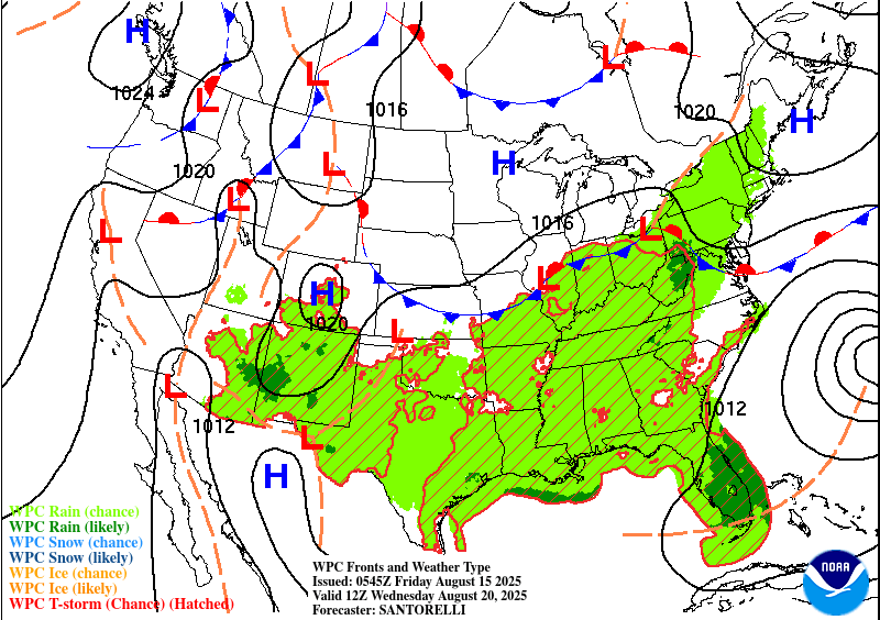 Our weather looks typical for mid-August as we go through the weekend and Monday. This afternoon brings us highs in the low to mid-90s across the state, and a weak front moving in from the north will result in more widespread thunderstorms than usual this afternoon and tonight. The front will serve to knock our temperatures down by just a couple of degrees for Saturday, and we should again see good coverage of afternoon thunderstorms along the coast. Sunday and Monday should bring us temperatures ticking upward again, with less widespread afternoon thunderstorms.