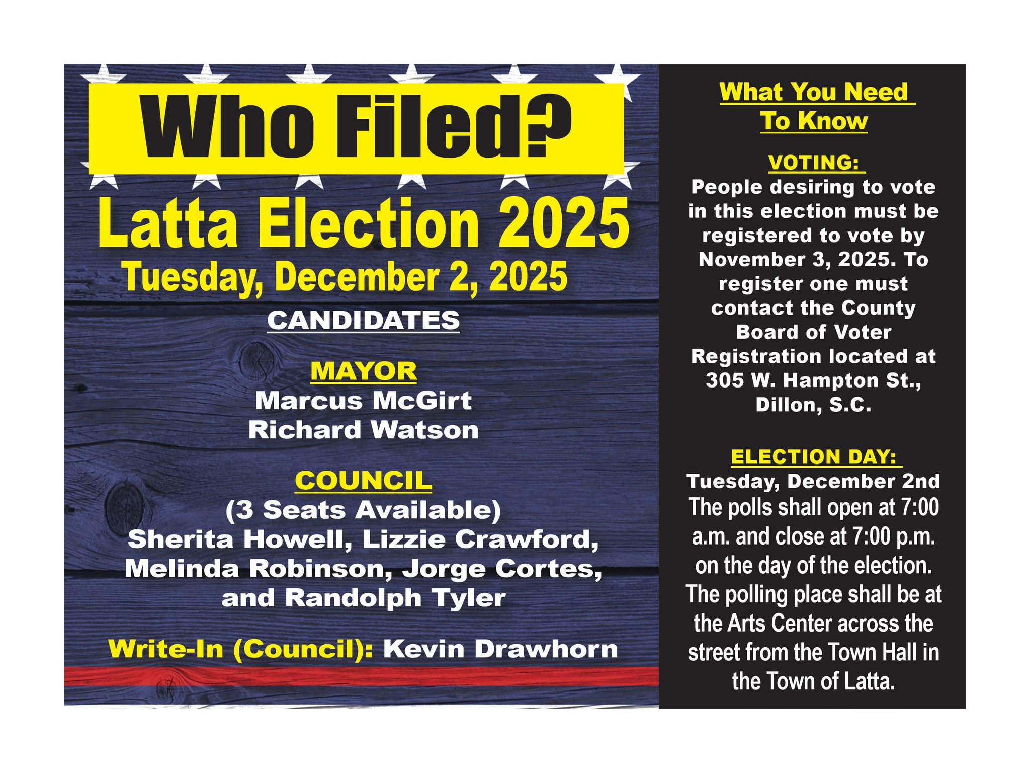 • Who Filed For The December 2, 2025 Election For Mayor And Council In Latta? The Answer Is Here