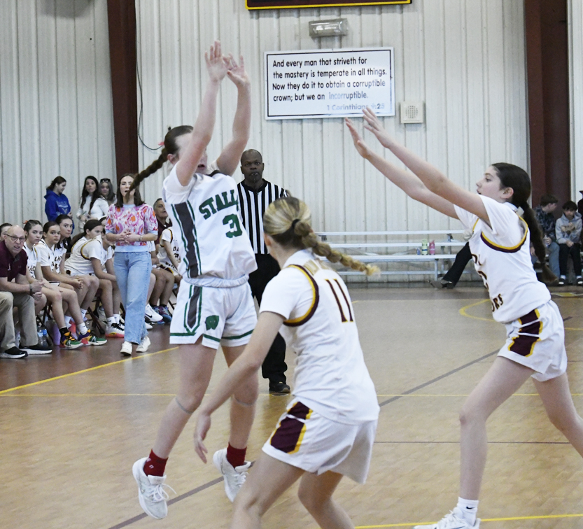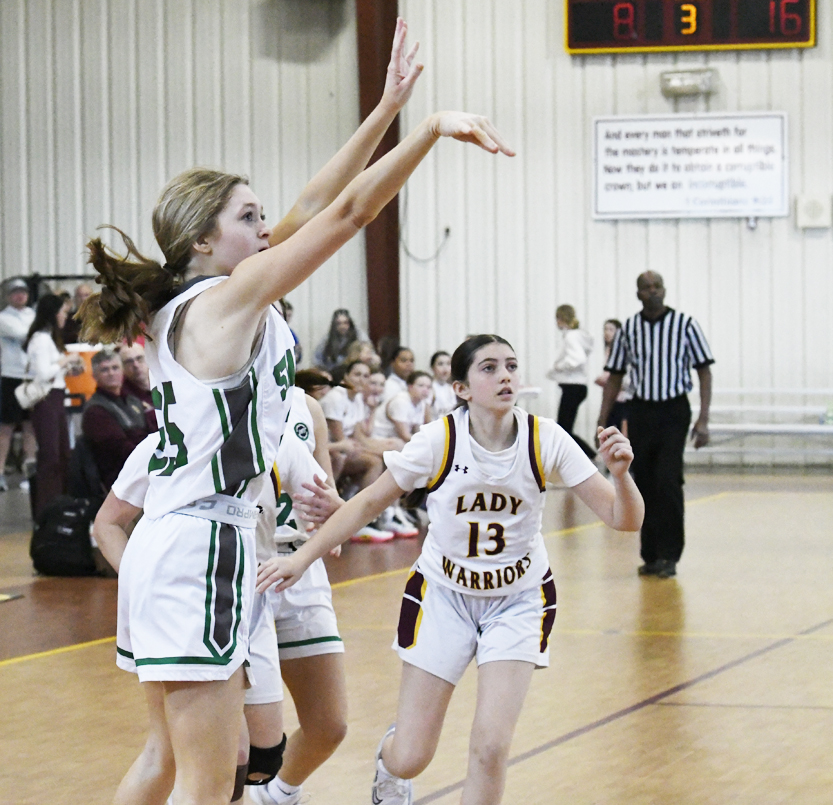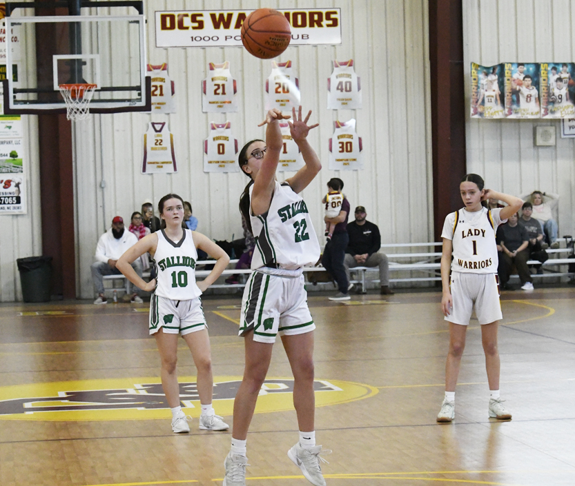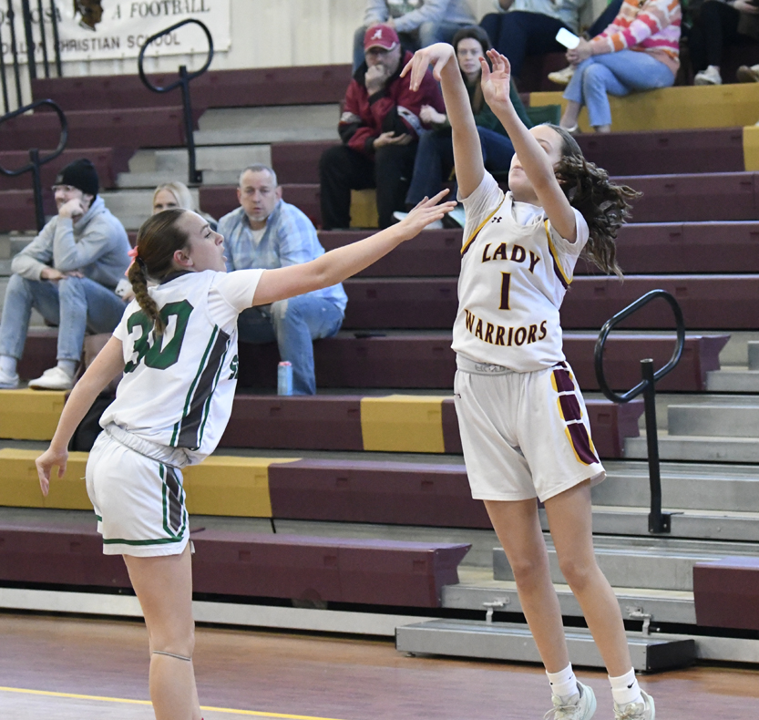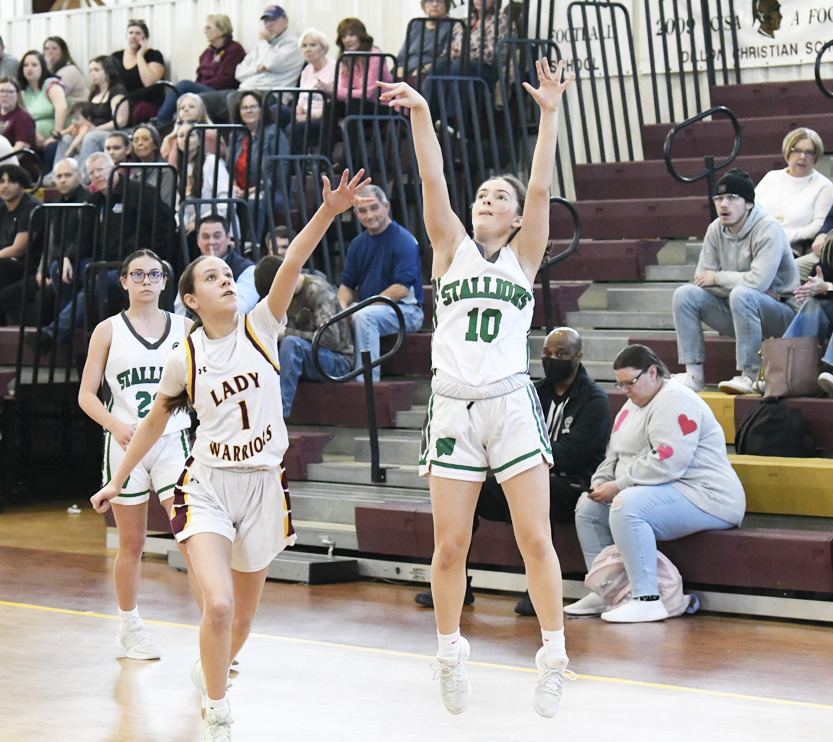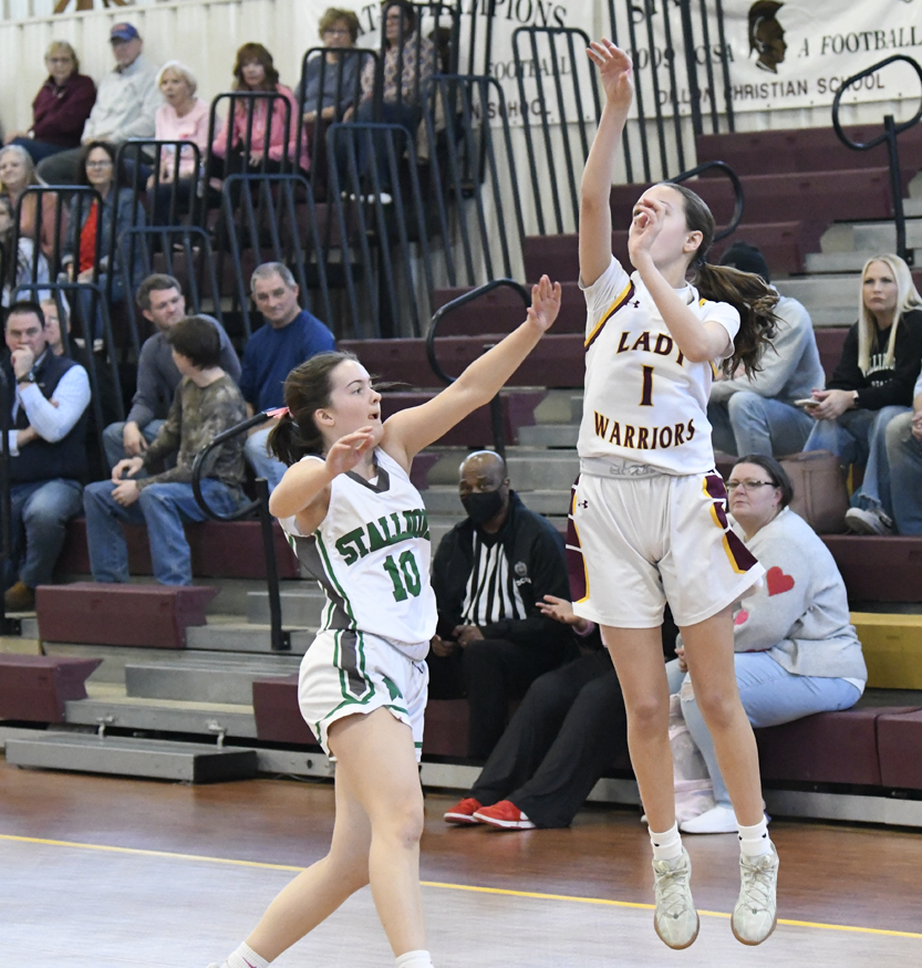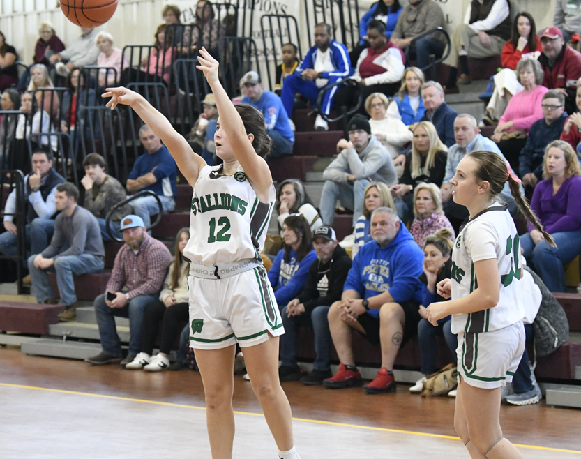 Kellahan sank a 2-point basket. The Warriors’ Easterling connected for a 2-point basket. The Stallions’ Bellahan added a free throw, and Bethany Hall sank a free throw to give the Stallions a 12-4 lead. The Warriors’ Easterling sank a 2-point basket followed by Delainey Hanna of Williamsburg Academy who hit a 2-point basket. As time was expiring in the first half, Hanna sank a basket at the buzzer to give Williamsburg Academy a 16-6 lead.