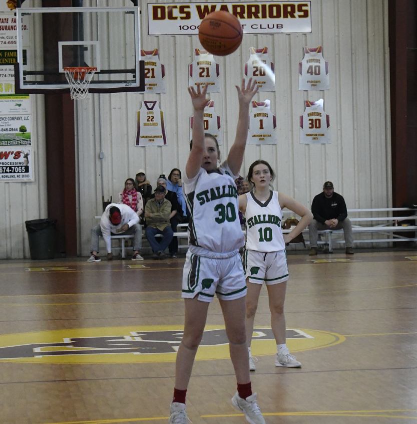 Dillon Christian School controlled the tipoff. The Stallions had a 5-0 lead before Dillon Christian’s Charlotte Easterling connected for a 2-point basket. After the first quarter Williamsburg Academy led 8-2.