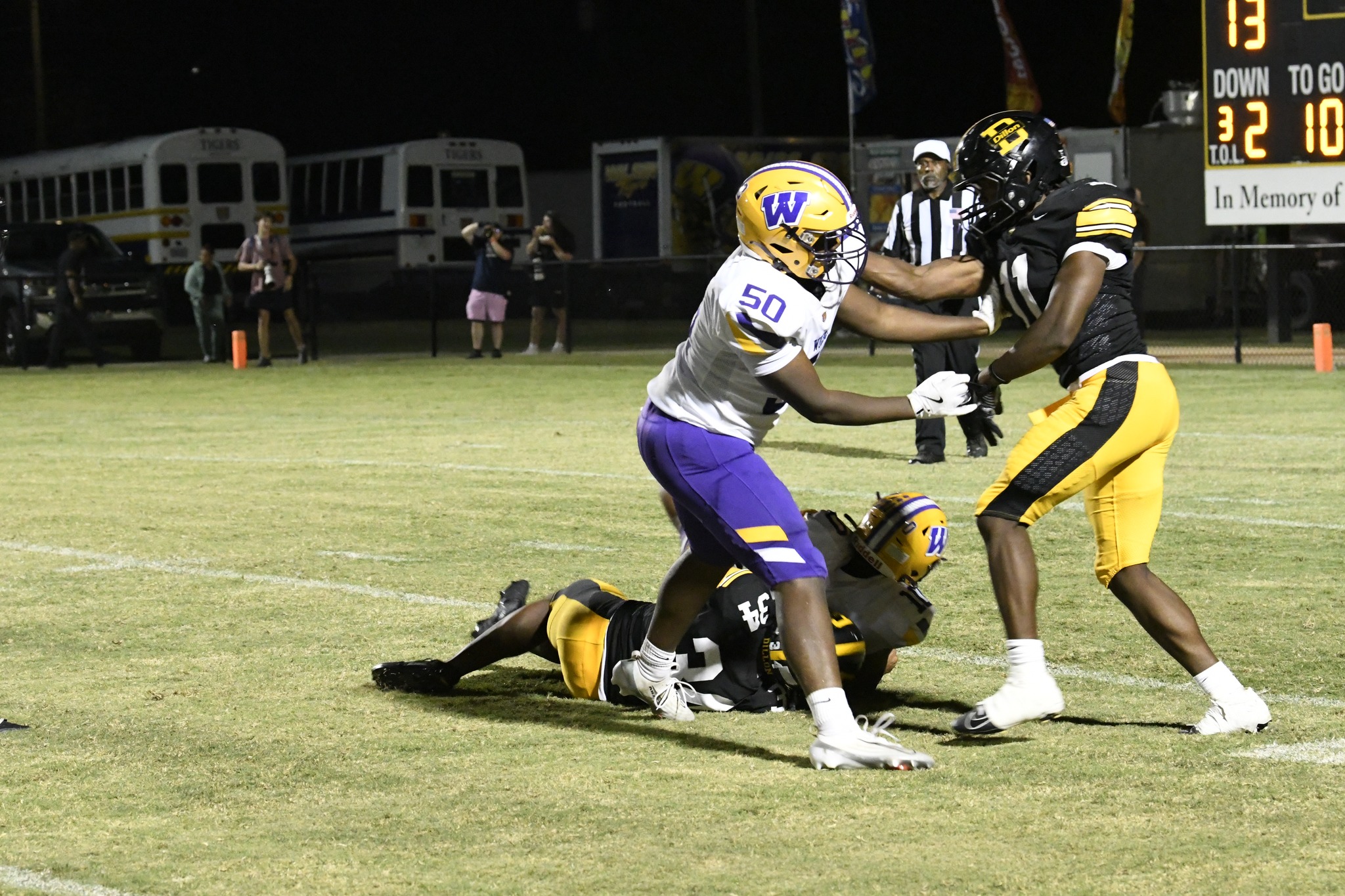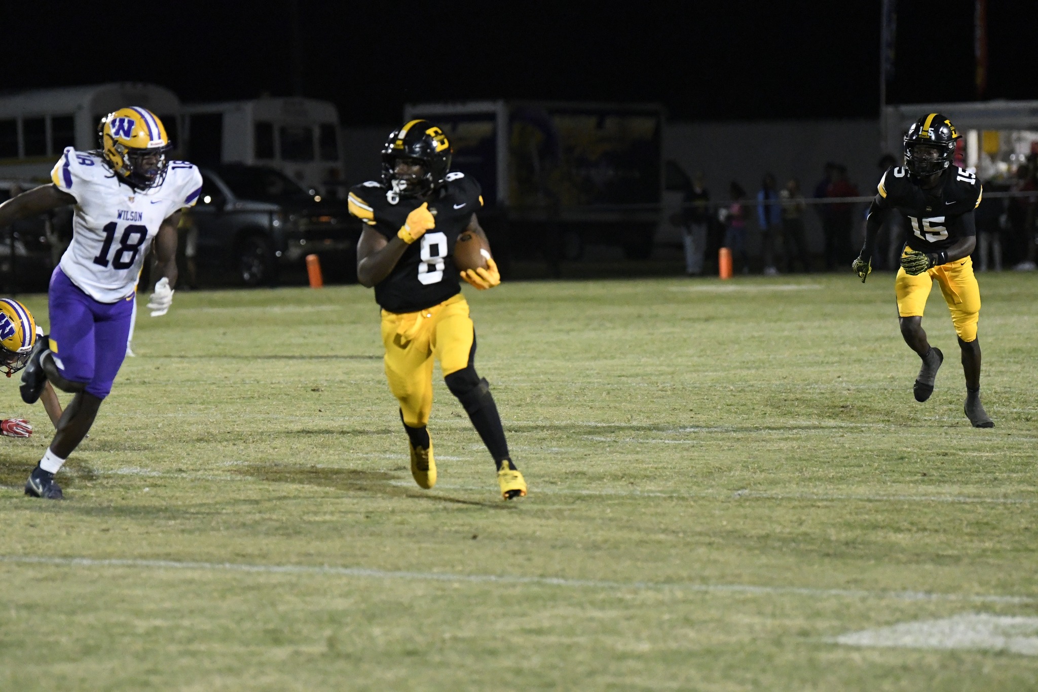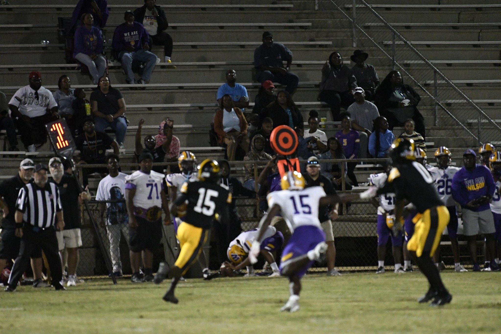 After a completion to Za Robertson and one to Dominick Felton, Za Robertson was on the receiving end of a 65-yard pass play that moved the football to the 15-yard line of the Wilson Tigers. Dominick Felton carried for an 11-yard gain. Khayel Sam Fong-Galia fumbled, and Wilson recovered on their own 16-yard line.