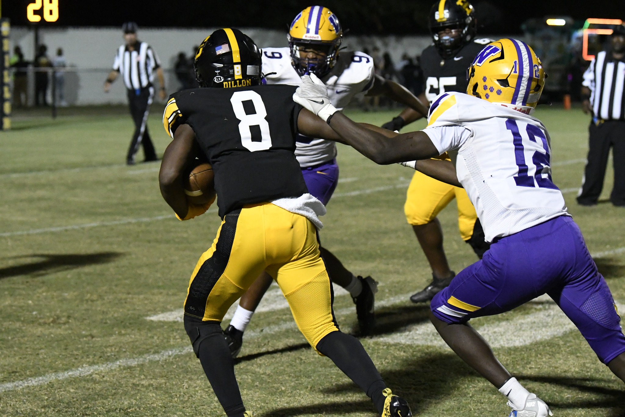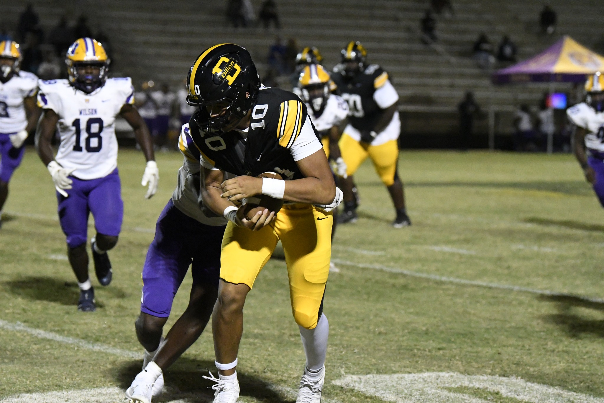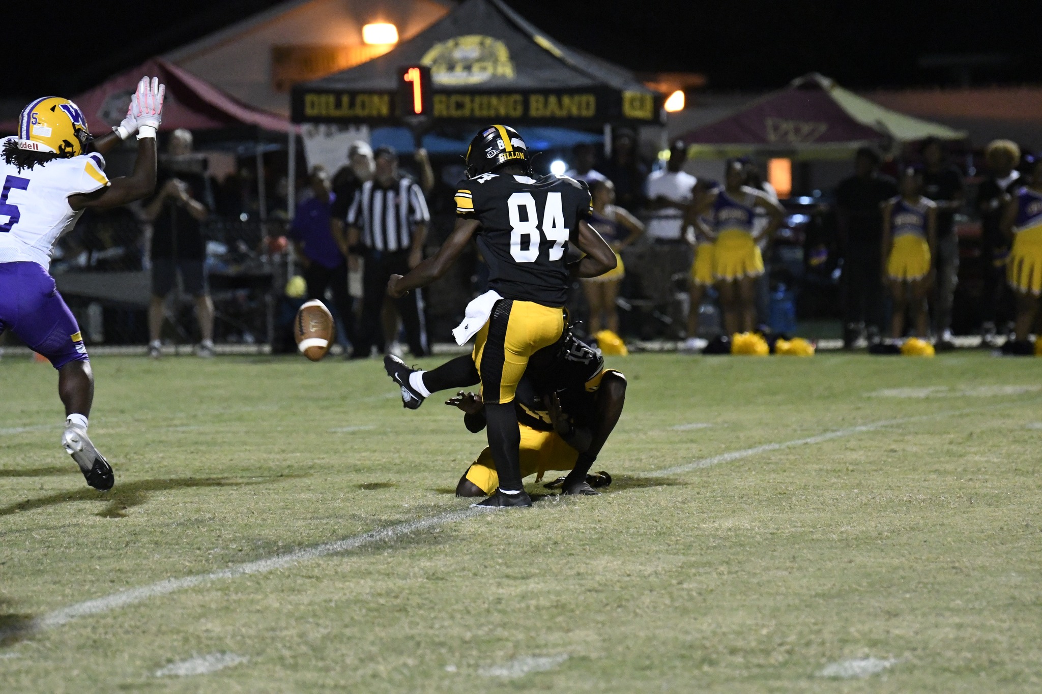Wilson faced a third down and 14 yards to go for a first down. The Tigers’ quarterback kept for a 13.5-yard gain. On fourth down and 1/2-yard to go for a first down, Wilson’s #9 kept for the first down. Wilson again faced a third down and 23 yards to go for a first down. The Wilson pass was deflected, and Dillon’s #2 intercepted to give Dillon the football on Wilson’s 20-yard line. Dillon’s Daniel Capehart scored with 1:39 remaining in the game. The PAT was good. Dillon’s Khayel Sam Fong-Talia kept for the 2-point conversion to give Dillon a 21-20 lead.