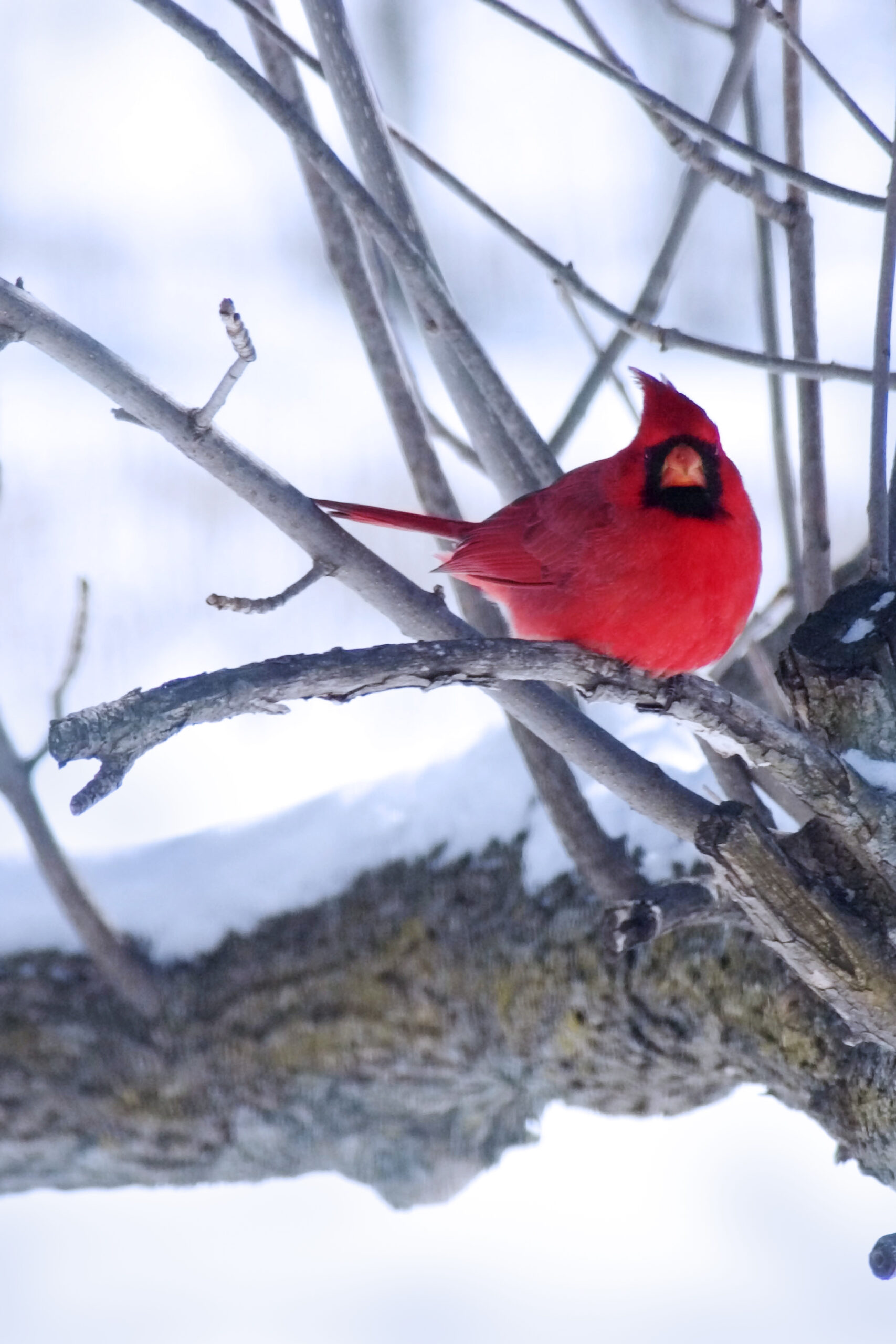 These lovely songbirds feed on insects, berries, grains and seeds (mainly safflower and sunflower). Their beak is especially designed for cracking seeds, which is a staple in their diet. They also have sturdy robust bodies, a large head, a long tail, and an incredibly strong beak. The body length of a cardinal runs from 8.3 to 9.1 inches, and the wingspan can range anywhere from 9.8 to about 12.2 inches. They have short, rounded wings that aid in navigating trees and bushes. Their wings are not designed for long distance flights, which consequently helps them excel in quick, short flights to evade predators.