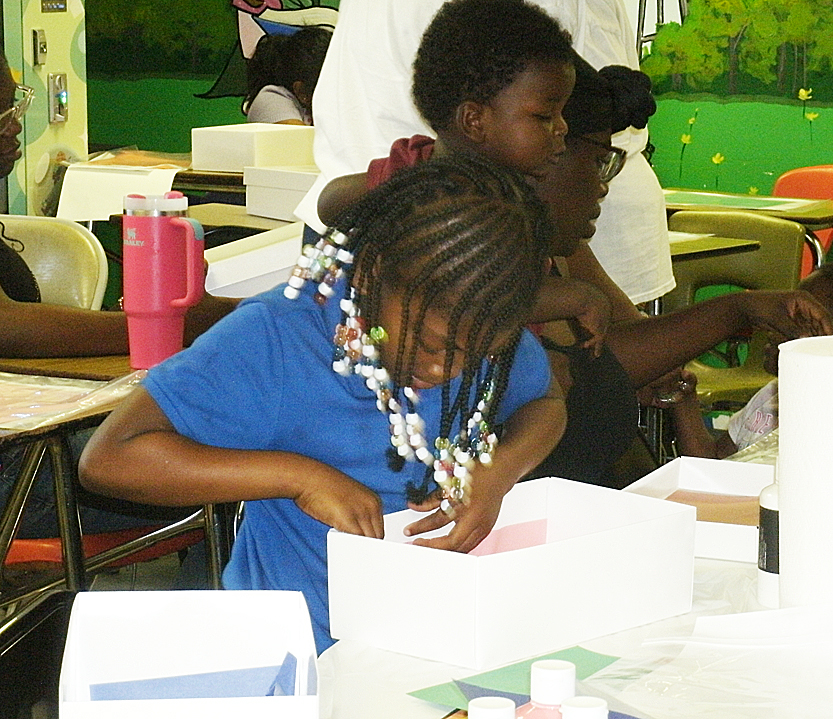 At the beginning of the program after a brief introduction, children enjoyed a lunch box from Chick-Fil-A with their choice of nuggets or chicken sandwiches. Then, the SCETV representative read a book called “Guess Who?” to the children who actively engaged with her during the reading of the book. Then they watched an approximately 15-minute episode of Ziggy, where they focused on observations, interpretations, imagination, and perspective. The episode featured photographer Adam Vo. After the episode and some discussion, the children worked on art projects. This educational series will continue on September 12, 19, and 26th.